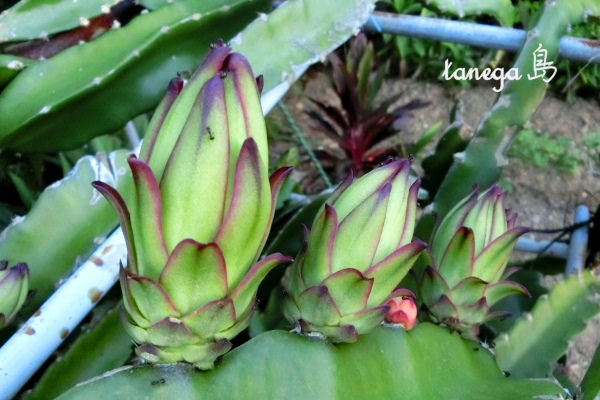 菜園のドラゴンフルーツにはたくさんの蕾がついています\(^o^)/