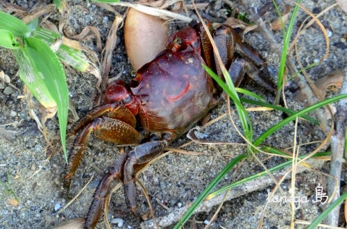 サンセット車いすマラソンの日に国道を横断していたカニ