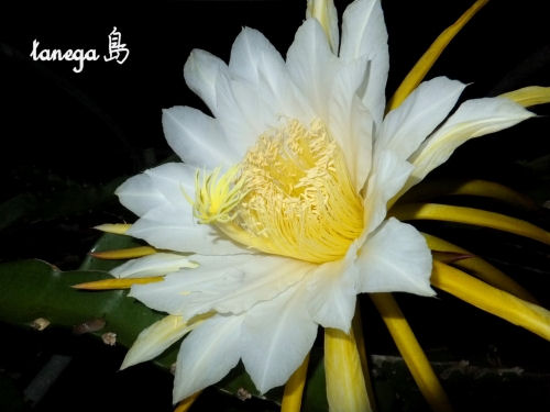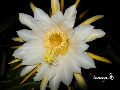 夜遅くにドラゴンフルーツの花が開花