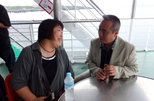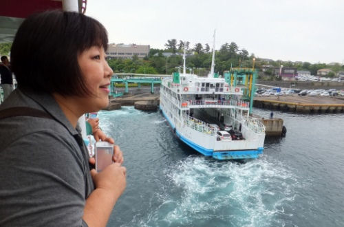 桜島フェリーに乗って鹿児島港から桜島へ15分の船旅です。