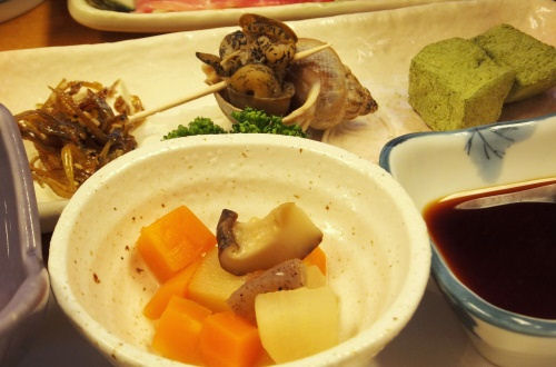 おすすめの”おまかせ料理コース”は、旭ガニやぞうり海老、ナガラメみそ焼きなど