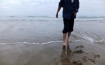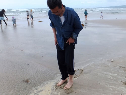 砂浜を踵でグリグリするとハマグリが触れる。主人はなかなか獲れなかったが