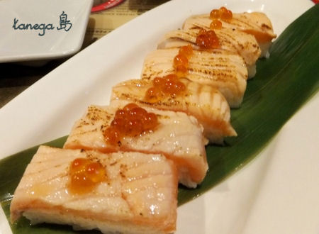 炙りサーモンといくらの押し寿司