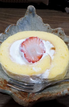 〆は手作りケーキと珈琲 苺のロールケーキはしっとりとした生地がとっても美味しくて