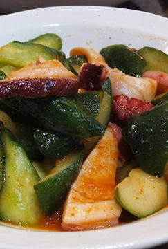 サックリ揚った串揚げがとても美味しかったです。新じゃがとキュウリの和え物はワサビの