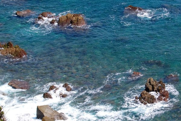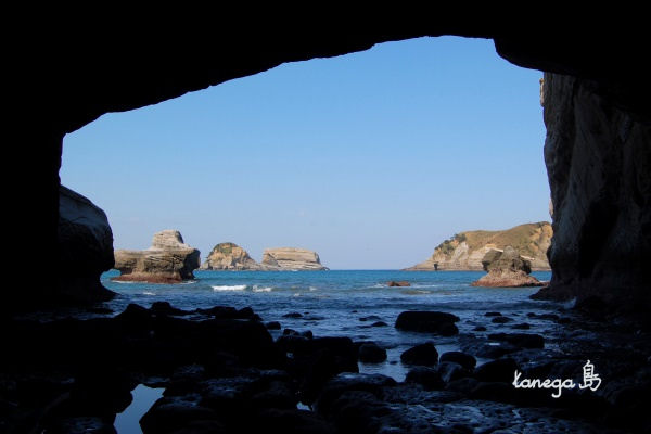 岩屋から見た海は青く綺麗です。