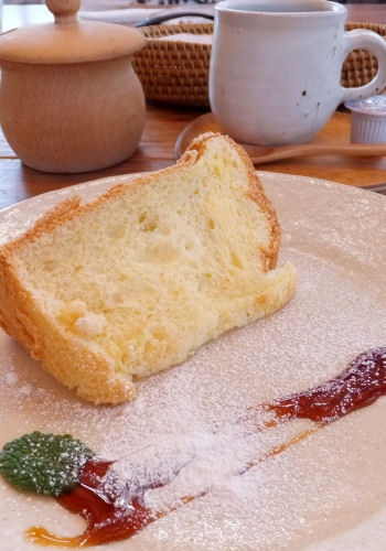 デザートにシフォンケーキと珈琲 ふんわり焼き上がったシフォンケーキを