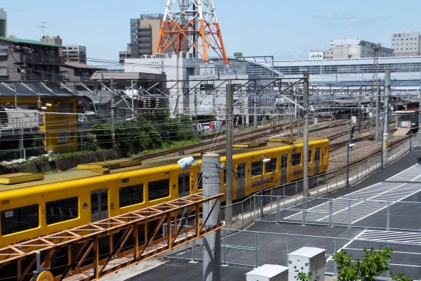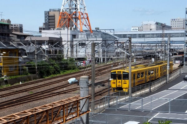 今日は宮田踏切から見た鹿児島中央駅方面です。