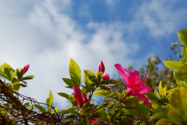 暖かくなって隣の空き地のツツジが満開になった。