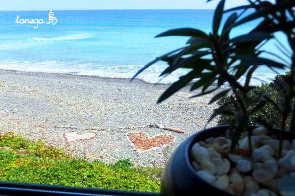 お料理も美味しいけど、窓から見える青い海とハートが素敵!