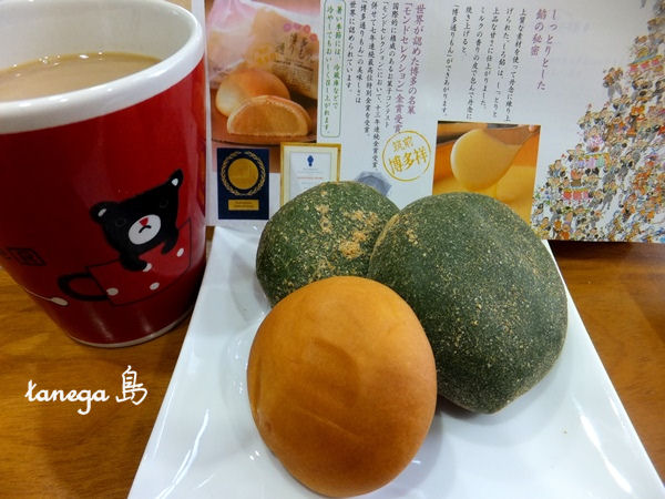 手前の西洋和菓子はスタッフさんから頂いた福岡土産の「博多通りもん」