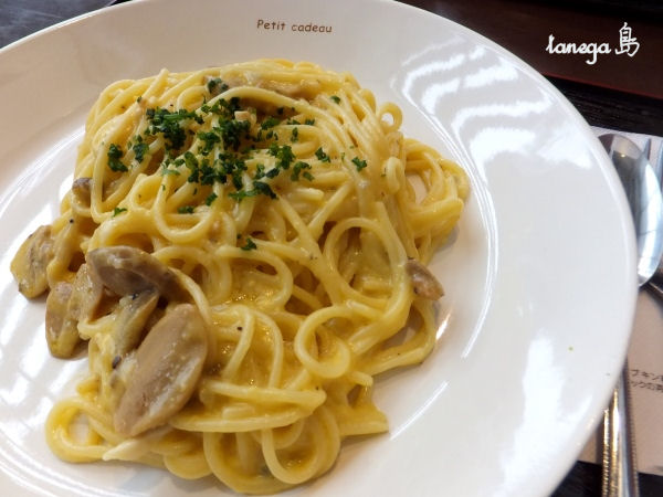 種子島空港「だいだいの木」でパスタを注文。 カルボナーラ とっても美味しかったですよ。