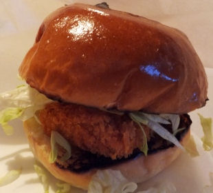 ランチメニューはバーガー4種 フライドポテトが付いて¥800- エビカツバーガーを注文。