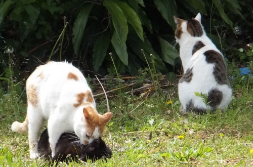 じゃれついてもなかなか相手にしてくれません ~o----o~~U ・ェ・U (゚ロ゚;)オッ!?