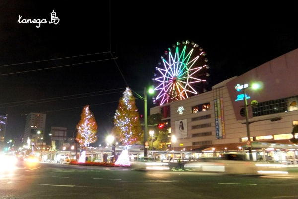 アミュプラザ鹿児島の観覧車はいろいろな色に輝いてきれいですよ。