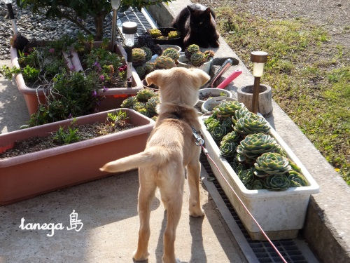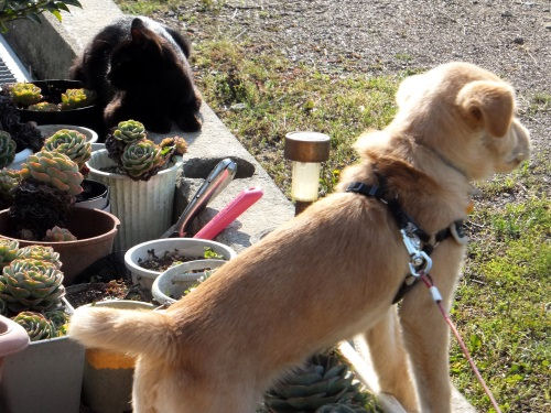 その中の一匹が我が家のワンコ寛平をからかいに来ました。