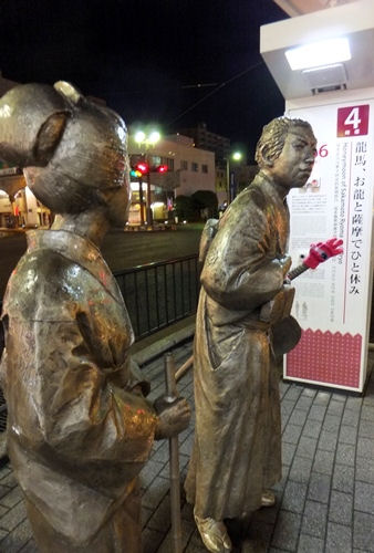 19日の夜に見かけた龍馬とお龍さん。 あれっ!龍馬さんは手が冷たかったのかな?