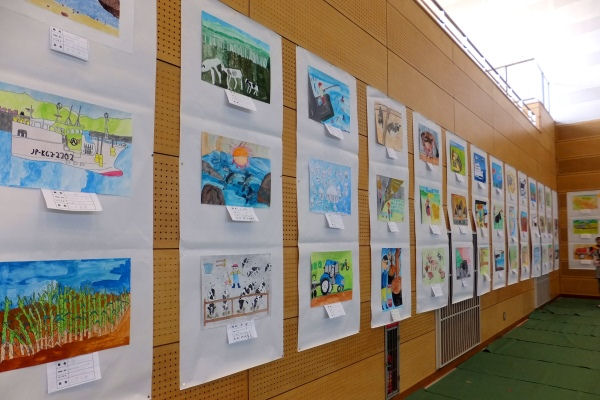 右の金賞の絵(小学2年生)は牛の表情と彩色がとっても素敵でした。