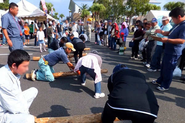 ◯各種イベント 12:30~13:45 牛乳早飲み競争・丸太切り・木積み競争