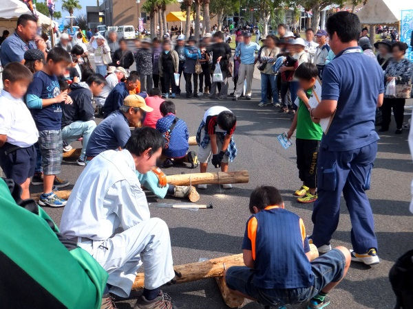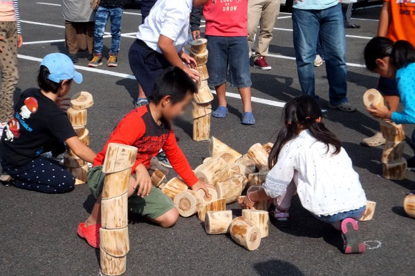小学低学年は「木積み競走」です。 バランス感覚の良さにビックリ\(◎o◎)/!