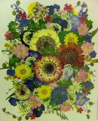 町民文化祭で展示されていた「押し花ひまわりクラブ」の作品