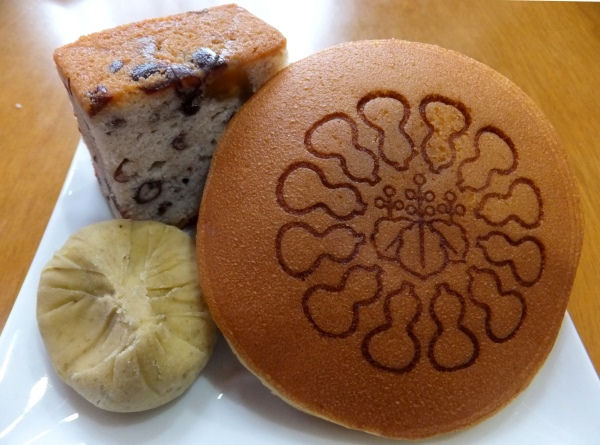 左奥がダイナゴン「栗」、右前が両口屋是清「千なり」 私の大好きな小豆と栗がたっぷり。