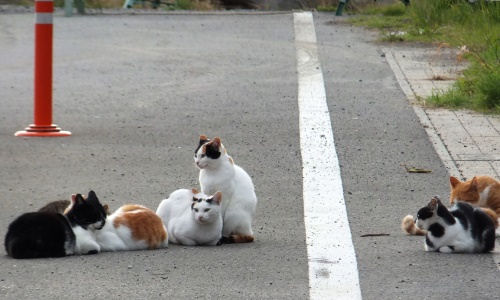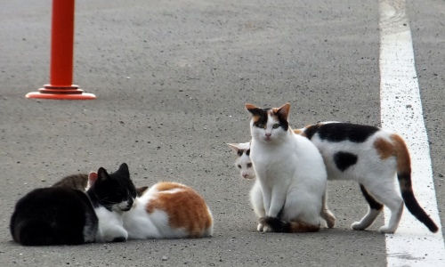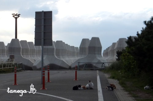 今日、西之表港に行くとテトラポット大群の前に猫がいっぱい