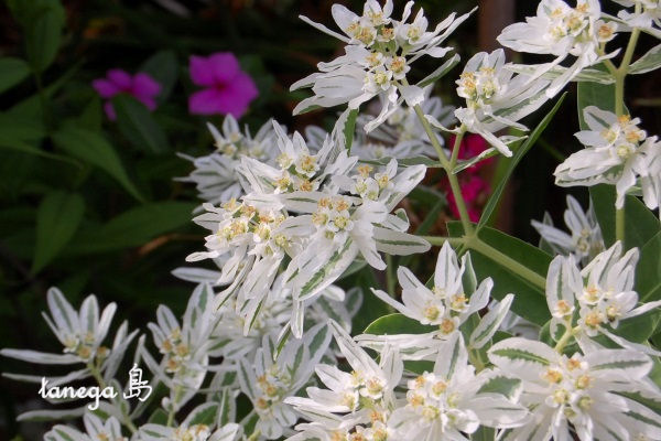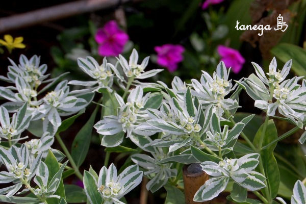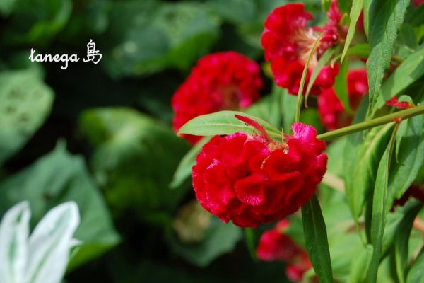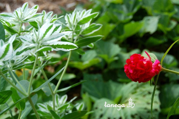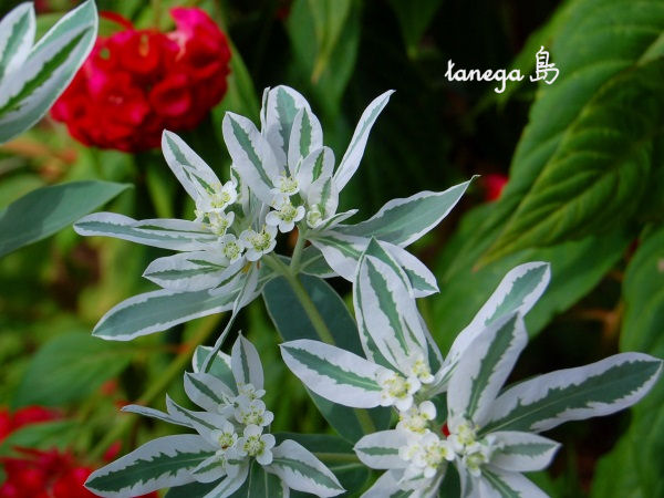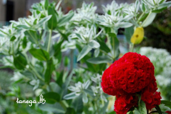 白く爽やかな「初雪草」と赤くて情熱的な「鶏頭」