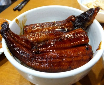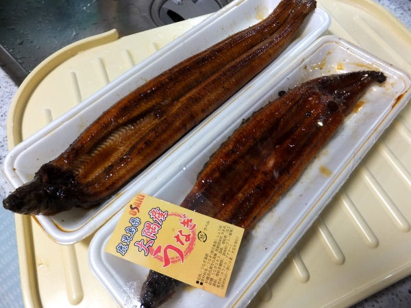 私は二匹の中央部分を一切れづつお茶碗にもらって食べ比べ。安い鰻の方が口に合います(^_^;)