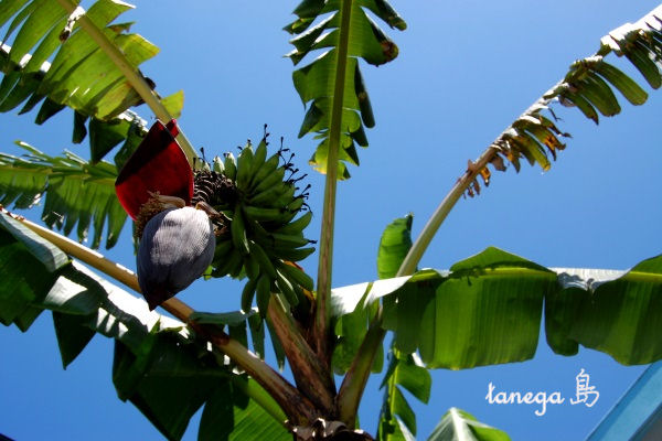 両親宅の裏庭ではモンキーバナナがたくさん実をつけてます。