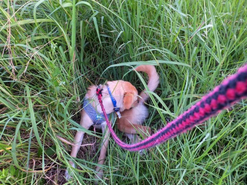 私の元へ来てもまだ暴れる寛平。リードを手繰り寄せると何かが手に触れた。