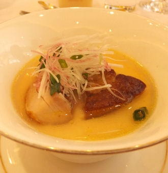 季節の白身魚とタスマニア・ロブスターのフュメ