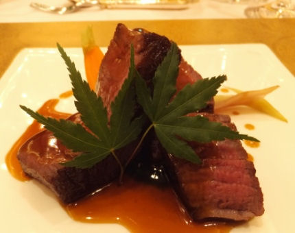 柔らかく焼き上げた牛フィレ肉の焼き物と季節の菜園のブレゼ