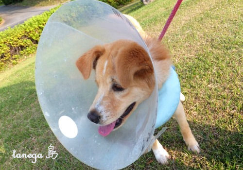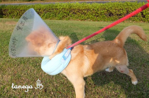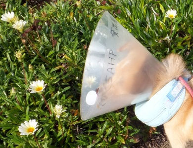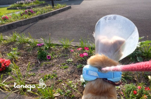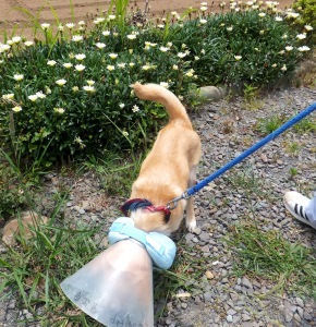 僕もお花を探したよ。 エリザベスカラーが邪魔だけど我慢我慢