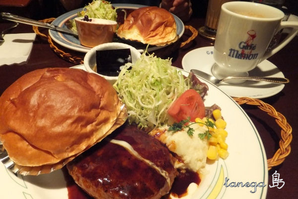 義妹に誘われてランチ ふわふわパンがついたハンバーグセット。