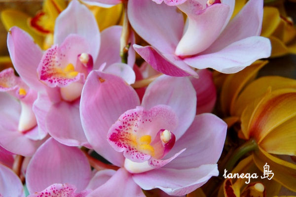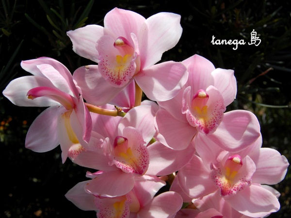 今日はお向いのお宅から頂いたピンクのシンビジュームで8na8naです。