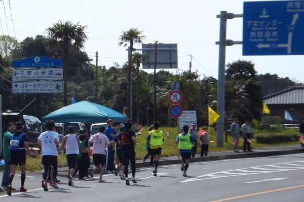 ハーフマラソンのスタートから数分後にフルマラソン選手がやってきました。