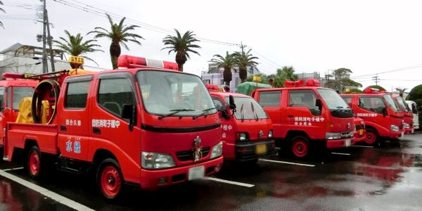 消防車が役場の駐車場にずら~っと並びました。