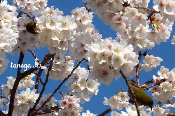 フルーツ公園の桜 たくさんのメジロ達が遊んでいました。