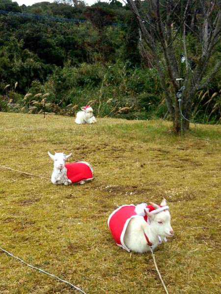 国道58号線沿い 美座(中種子)の坂に、この時期になるとサンタヤギが現れる。